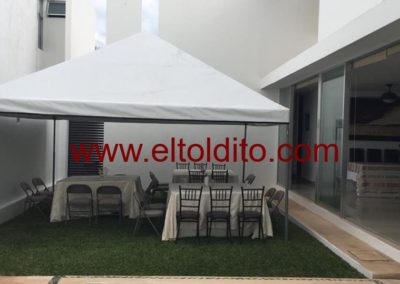 Este diseño es ideal para todo tipo de eventos, porque tiene la capacidad de cubrir espacios abiertos con la finalidad de proteger la entrada de los rayos uv. y la lluvia.